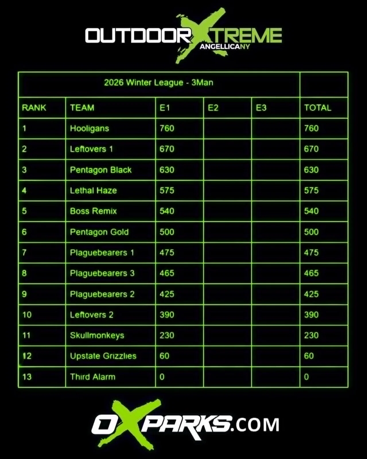 How to quality for finals event – The top 8 teams in 3man and 5man will qualify for the finals event on Feb. 22ND. All previous points will not matter. For that event you will play 7 games, round robin format, to determine the league overall winner.